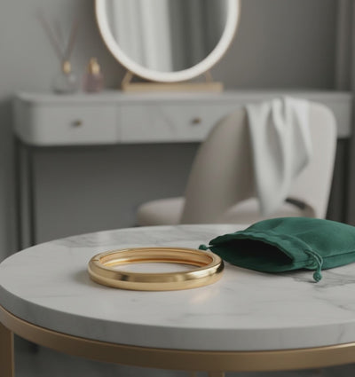 This bangle draws from the meaning of kin gold as a symbol of strength, purity, and quiet resilience. Its clean, weighty form feels grounded and refined, with a smooth finish that reflects without shouting.